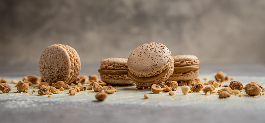 קולקציית המקרונים באריזה חדשה! עוגיית מרנג שקדים, במילוי גנאש קפה. אלרגנים: בכפוף לתווית על גבי המוצר