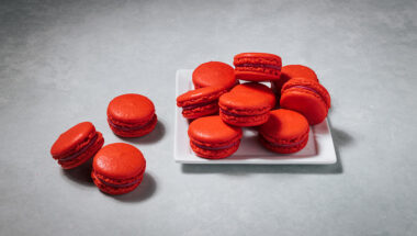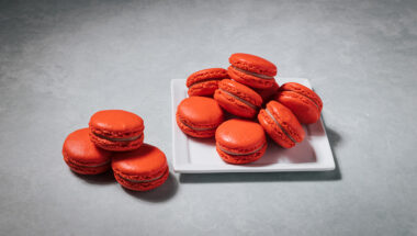 קולקציית המקרונים באריזה חדשה! עוגיית מרנג שקדים, במילוי גנאש תות. אלרגנים: בכפוף לתווית על גבי המוצר