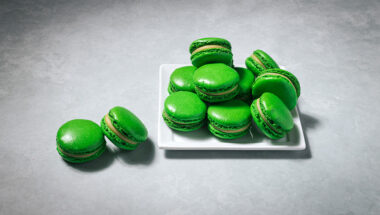 קולקציית המקרונים באריזה חדשה! עוגיית מרנג שקדים, במילוי גנאש פיסטוק אלרגנים: בכפוף לתווית על גבי המוצר
