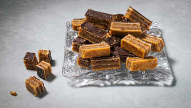 אורז תפוח, פקאן קלוי, דבש, חמאה, חלבה, קקאו בזיגוג שוקולד לבן