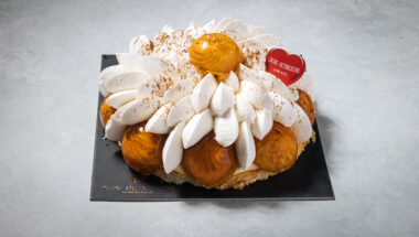 עוגה חגיגית עם תחתית בצק עלים חמאה,קרם פטיסייר, פחזניות מקורמלות במילוי קרם פטיסייר וקצפת וניל. מומלץ לאכול ביום הקניה בהזמנה מראש טלפונית בלבד-קיימת בסניפים בסופי השבוע