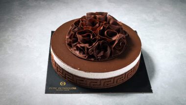 מוס שוקולד חלב ולבן בין שכבות גנואז' שוקולד וגנאש שוקולד מריר.