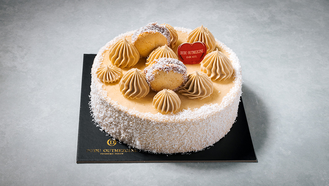 בסיס אלפחורס, ריבת חלב, דקואז קוקוס וקרם קוקוס, בקישוט שבטילי מוס ריבת חלב