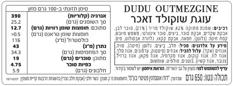 שכבות עוגת שוקולד ושקדים עשיר ,עם קרם שוקולד מריר וגרידת משמש מיובש בתחתית.