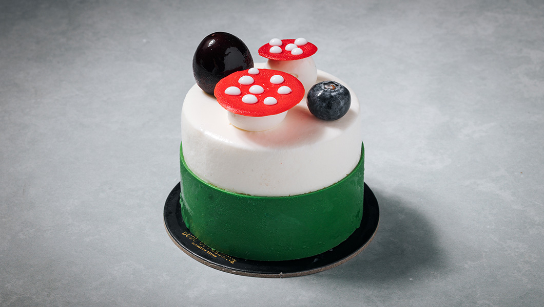 מוס שוקולד לבן עם ליקר אייריש קרים ומרנג על בסיס ג'אקונד שוקולד לבן אפוי