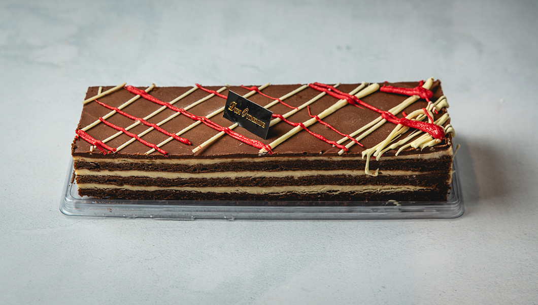 עוגת שוקולד אפויה,ללא קמח, עם שכבת גנאש שוקולד עשיר מעל. (ללא תוספת סוכר)