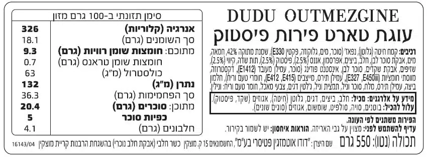 תחתית בצק פריך חמאה, קרם פטיסייר ומעל פירות טריים (הפירות משתנים לפי העונה)
