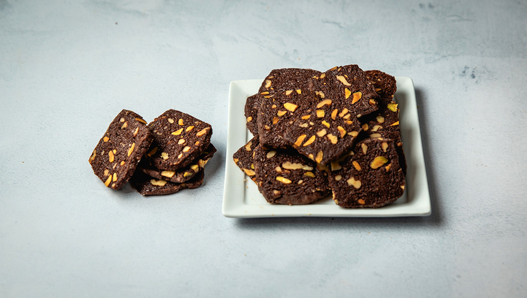 עוגיות חמאה עם קקאו ,אגוזי מלך ופיסטוק