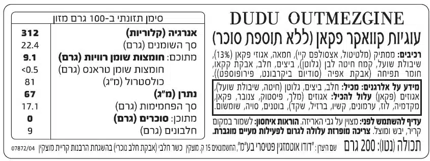 שיבולת שועל ואגוזי פקאן ללא תוספת סוכר (מכיל קמח)