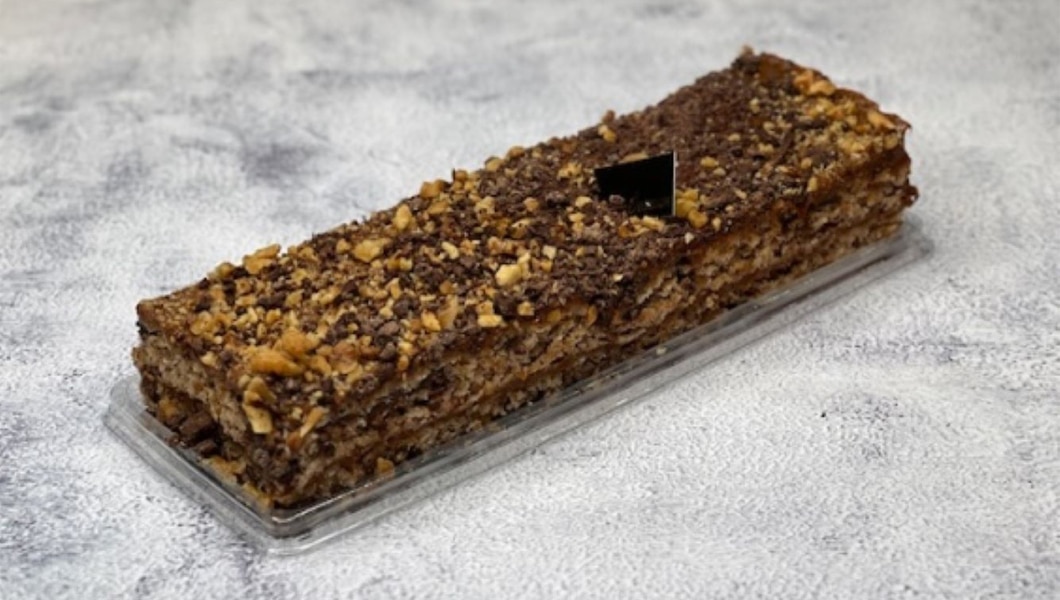 עוגה בחושה עם אגוזי מלך גרוסים, שוקוצי'פס, קוקוס וריבת חלב