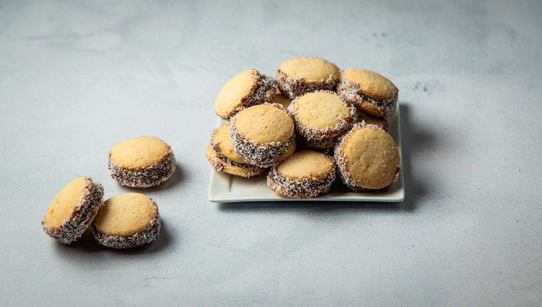עוגית חמאה במילוי ריבת חלב בציפוי קוקוס.