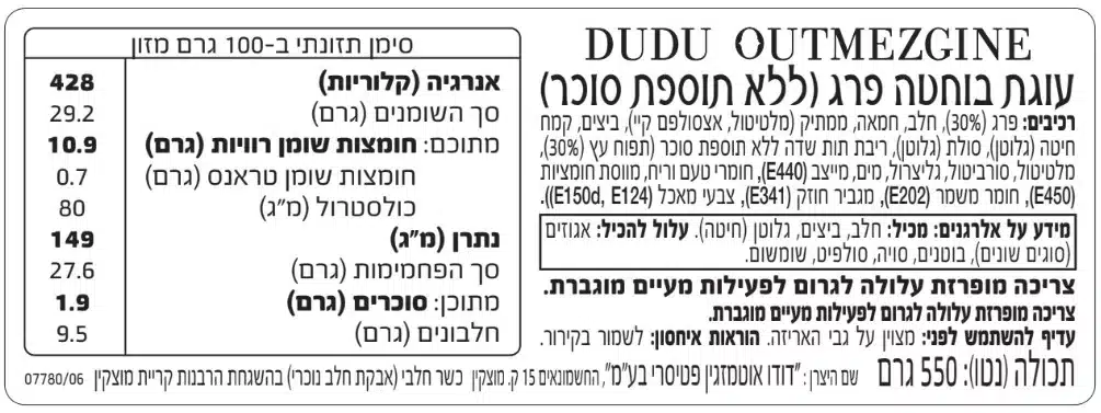 שכבת בצק עלים רך עם קרם פטיסייר (וניל) בין השכבות ללא תוספת סוכר