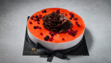 קרם בוואריה פטל בשכבות גנואז (טורט שוקולד) שקדים עם שמנת ריץ' ללא חלב