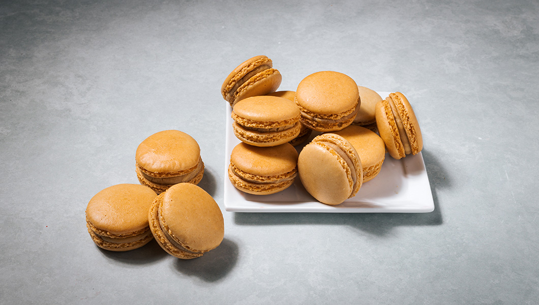קולקציית המקרונים באריזה חדשה! עוגיית מרנג שקדים, עם גנאש מנגו אלרגנים: בכפוף לתווית על גבי המוצר