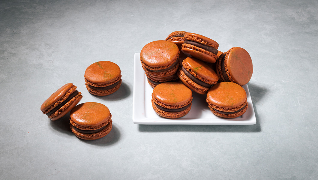 קולקציית המקרונים באריזה חדשה! עוגיית מרנג שקדים, במילוי גנאש קפה. אלרגנים: בכפוף לתווית על גבי המוצר