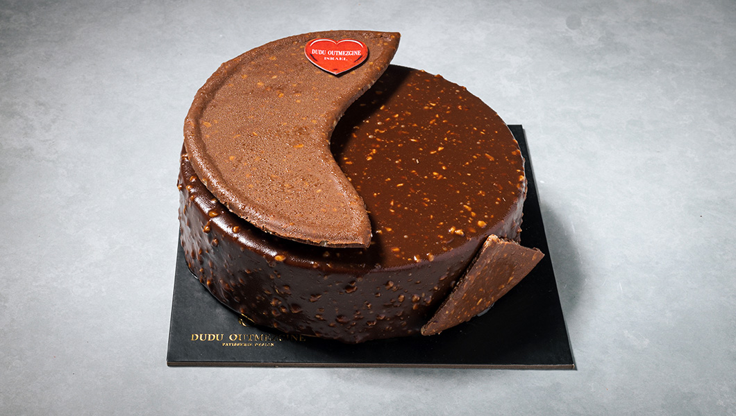 מוס שוקולד מריר ,פרלינה פייטה בין שכבות שוקולד חלב, על בסיס דקואז' אגוזי לוז