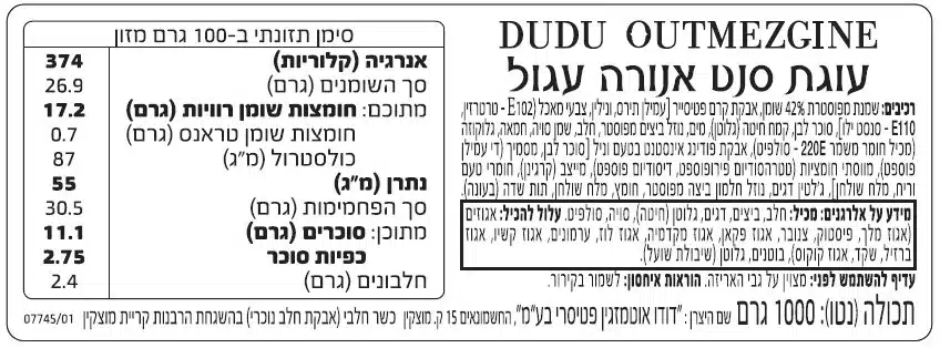 עוגה חגיגית עם תחתית בצק עלים חמאה,קרם פטיסייר, פחזניות מקורמלות במילוי קרם פטיסייר וקצפת וניל. מומלץ לאכול ביום הקניה בהזמנה מראש טלפונית בלבד-קיימת בסניפים בסופי השבוע