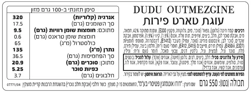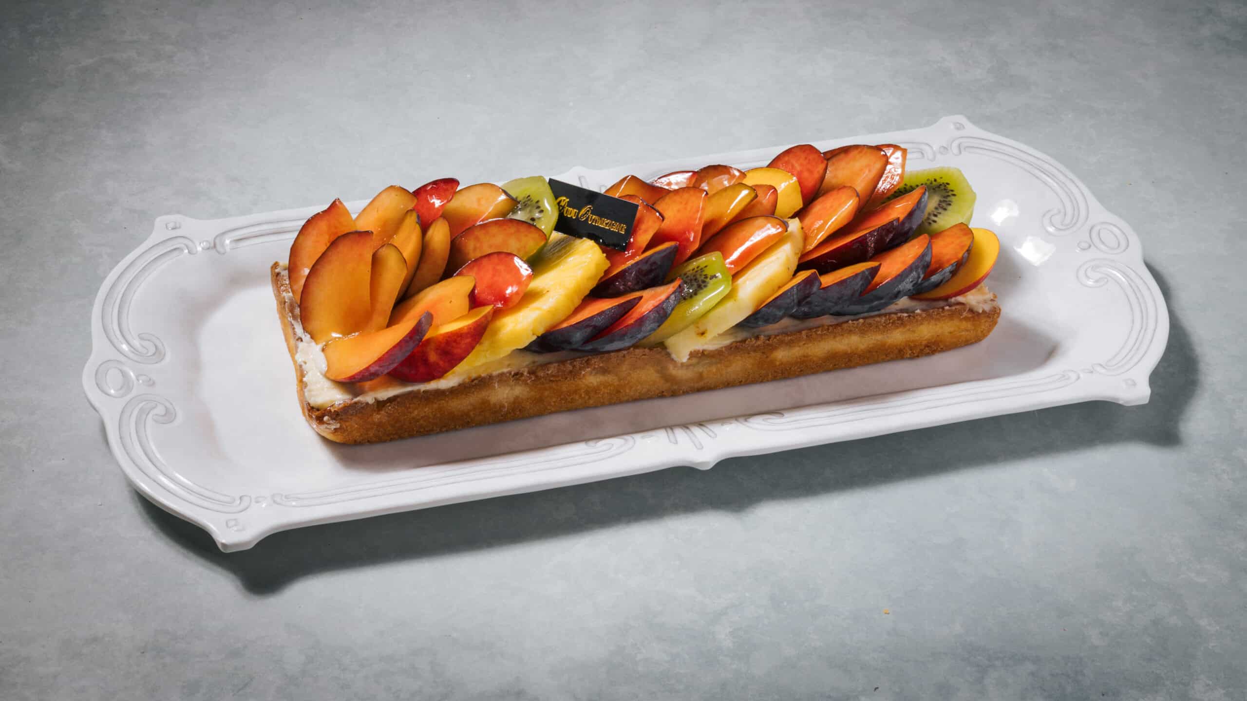 תחתית בצק פריך חמאה, קרם פטיסייר ומעל פירות טריים (הפירות משתנים לפי העונה)