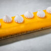 מוס שוקולד לבן, נוצ'לה אגוזי לוז, קרם ברולה וניל, על בסיס ג'אקונד שקדים פייטה פרלינה.