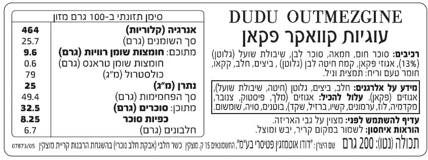 אורז תפוח, פקאן קלוי, דבש, חמאה, חלבה, קקאו בזיגוג שוקולד לבן