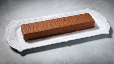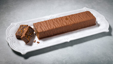 עוגה המורכבת מפצפוצי אורז, אגוזי פקאן, שוקולד וקרמל מצופה בשוקולד חלב