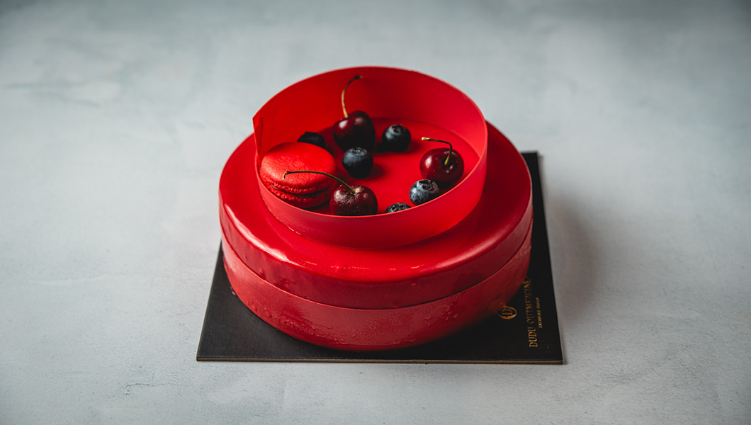 בסיס טויל שקדים ,מוס שוקולד לבן ווניל, קומפוט פירות יער. (הפירות משתנים לפי העונה)