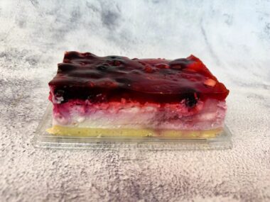 קרם בוואריה פטל בשכבות גנואז (טורט שוקולד) שקדים עם שמנת ריץ' ללא חלב